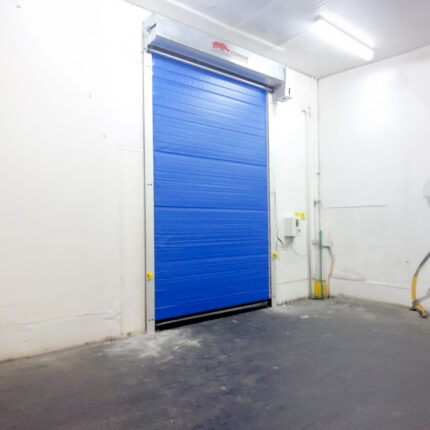Nuestra Puerta de Rollo Rápido de PVC Frigorífica está diseña especialmente para operar en accesos interiores de frigoríficos, plantas de procesamiento de congelados, entre otros recintos que necesitan mantener temperaturas bajas.Posee un sistema de aislamiento basado en espuma de poliestireno extruido, que ofrece una menor conductividad térmica.Ventajas: